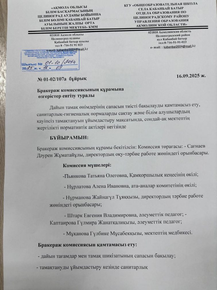 КГУ «Общеобразовательная школа села Кабанбай батыр отдела образования по Целиноградскому району управления образования Акмолинской области»