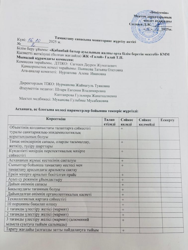 16.10.2025 тамақтану сапасына мониторинг жүргізу актісі