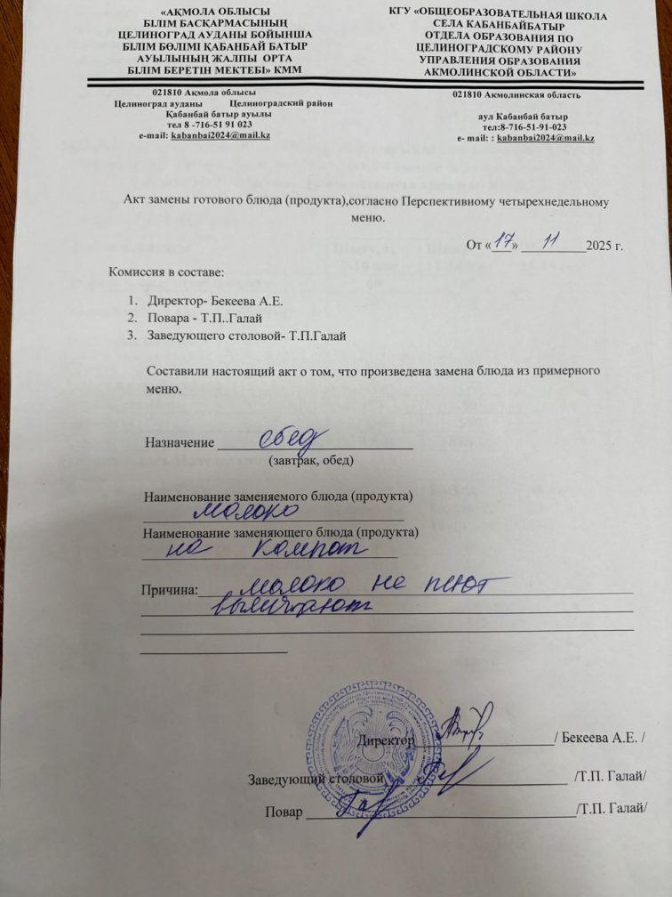 КГУ «Общеобразовательная школа села Кабанбай батыр отдела образования по Целиноградскому району управления образования Акмолинской области"