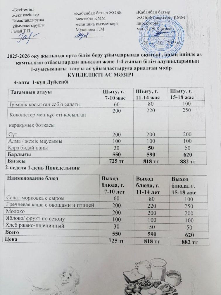 20.10.2025 ж. ас мәзірі