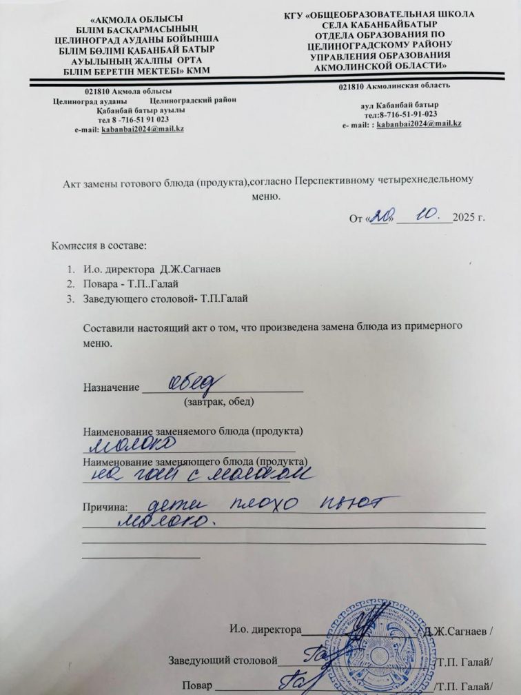 КГУ «Общеобразовательная школа села Кабанбай батыр отдела образования по Целиноградскому району управления образования Акмолинской области"