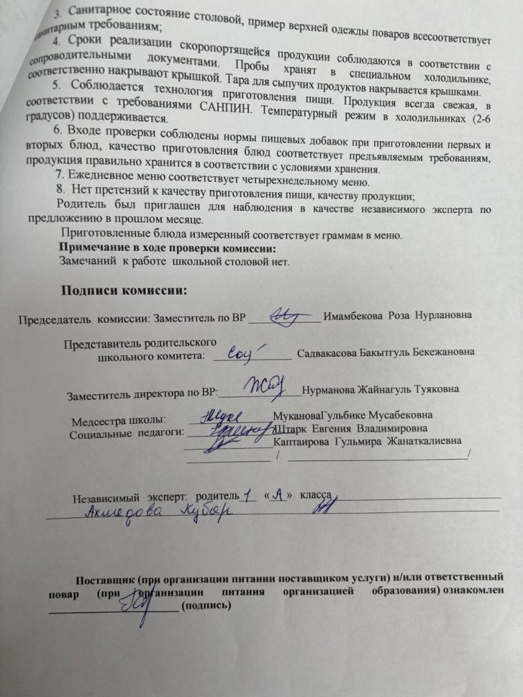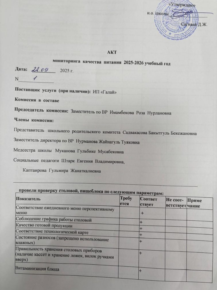 22.09.2025 тамақтану сапасына мониторинг жүргізу актісі