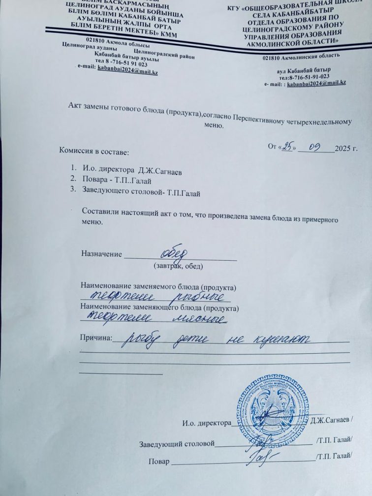 КГУ «Общеобразовательная школа села Кабанбай батыр отдела образования по Целиноградскому району управления образования Акмолинской области"
