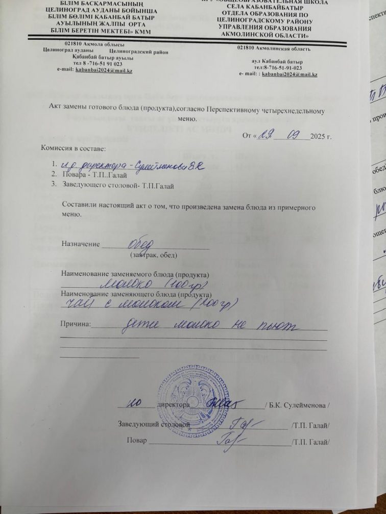 КГУ «Общеобразовательная школа села Кабанбай батыр отдела образования по Целиноградскому району управления образования Акмолинской области"